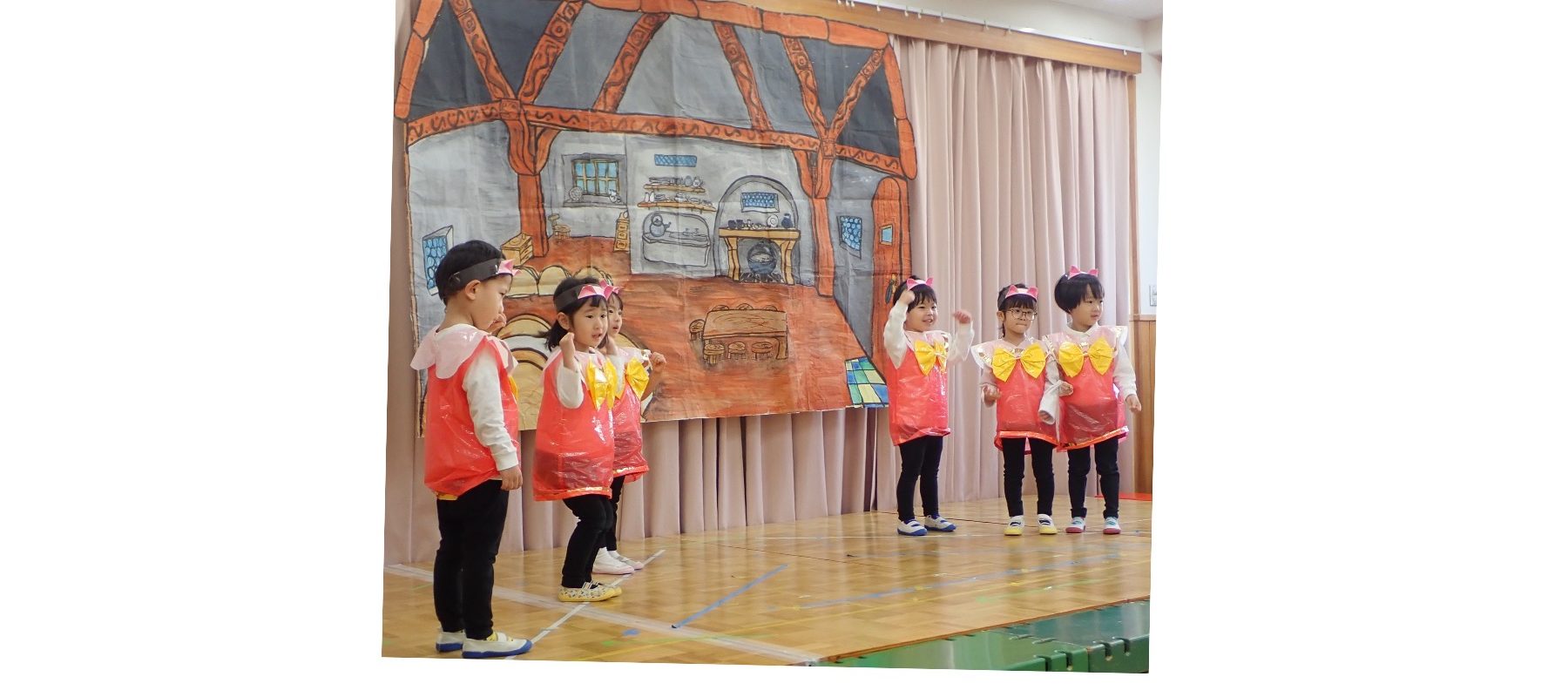 本番前は少し緊張している様子がありましたが、劇が始まると大きな声で台詞を言う姿や、音楽が流れると元気に歌ったりと楽しんで演じていました。