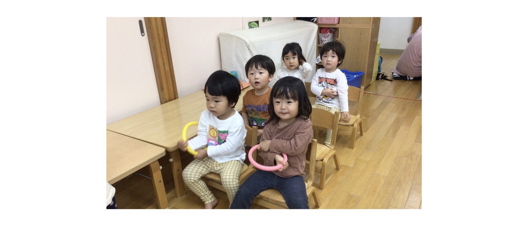 2歳児ちゅうりっぷ組はごっこ遊びが大好きな子が多く、楽しそうなやりとりの中にはクスッと笑える場面がよく見られます。