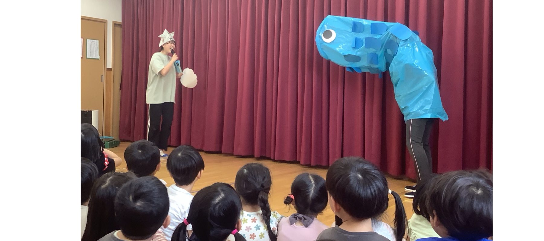 『こいのぼりがすいこんだ』の劇では、こいのぼりが吸い込んだものは何だろうと興味津々にみており、こいのぼりの登場シーンから大盛り上がりでした。