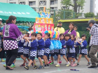 心配だった雨も降らず、年長児の元気な「ワッショイ!」の掛け声で始まった夏まつり。
