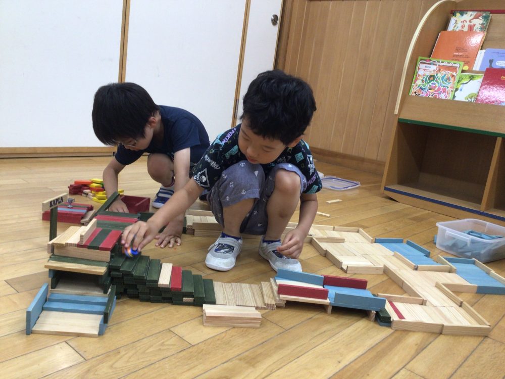 最近、カプラが大ブームで、友だちと「〇〇作ろうよ!」と協力して夢中になって作っている子どもたち。